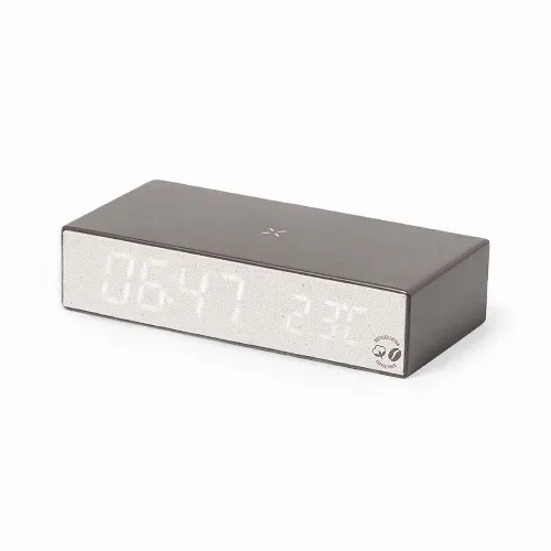 Multifunction clock with integrated 10W wireless charger.