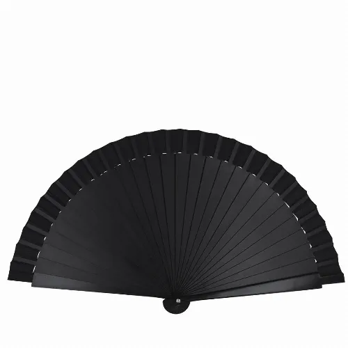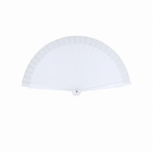 Fan with sticks in PP and matching 210D polyester fabric.