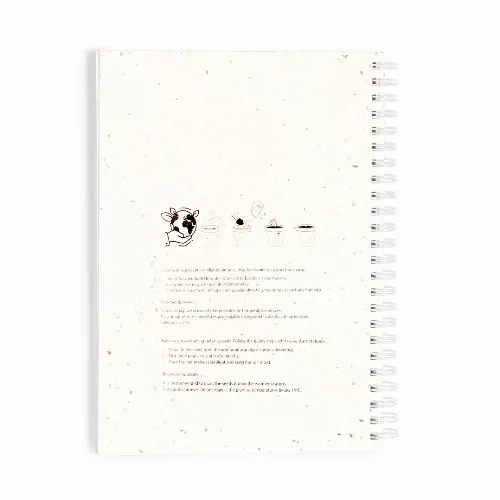 With 80 plain white sheets. The covers include petunia seeds, making it plantable paper at the end of its lifespan. Including planting instructions on the back cover and presented in an individual recycled paper bag.