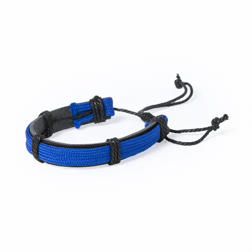 Adjustable leather bracelet with polyester threads in cheerful colorful finish. Adjustable closure with reinforced thread.
