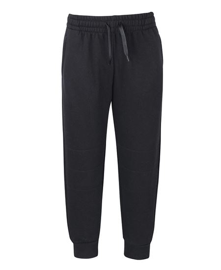 Urban fit , 65% Polyester for durability and 35% Cotton for comfort , 280gsm Fleece , Full elastic waist with exposed draw cord. Kidas draw cord bar tacked at back , Hidden coin pocket on inner waistband , 1 x 1 Rib leg cuff with elastane , Kidas sizes 4 to 14 a Right pocket with zip closure and knee patch.