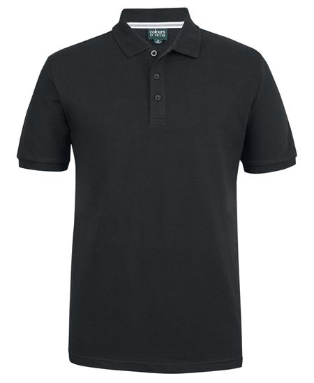Classic fit , Solid colour: 100% Cotton , Charcoal Marle & Grey Marle: Polyester/Cotton , 210gsm pique knit fabric , Knitted collar with herringbone tape inside back neck , Side splits , Complies with Standard AS 4399:2020 for UPF Protection , 3XS only in Black, Navy, White.