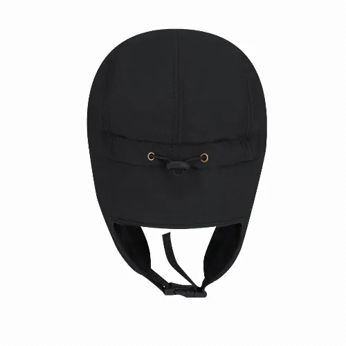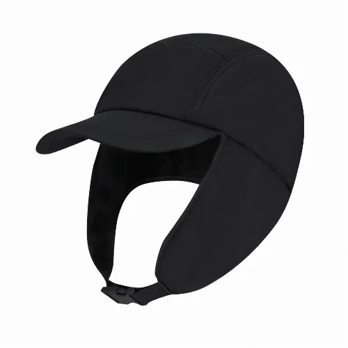 Cap with ear flaps and warm polar fleece interior.