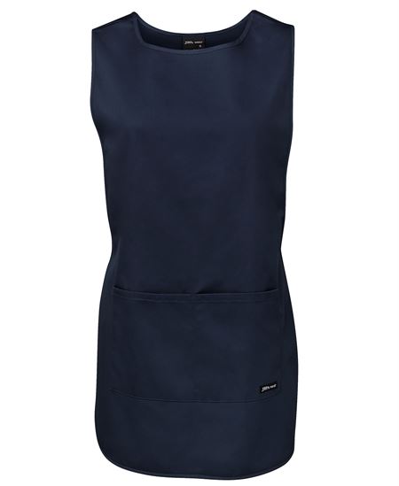65% Polyester for durability, and 35% Cotton drill for comfort , 190gsm fabric , Adjustable side straps with hook pile tape , Front pocket separated into two sections , Easy care fabric.