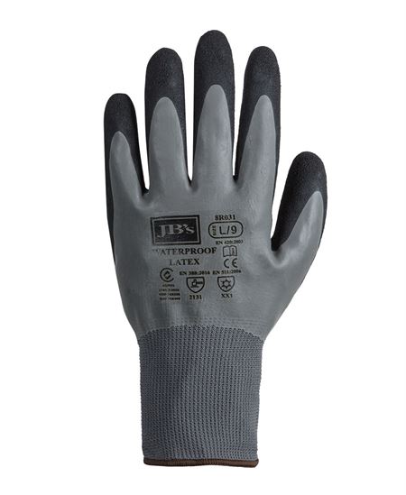 JB WATERPROOF DBL LATEX COATED GLOVE 5PK7: S - 2XL - GREY/BLACK