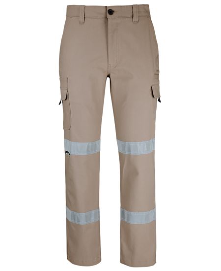 Urban fit , Main fabric: Cotton/Elastane for added comfort, 280gsm canvas , Pocket fabric: heavy duty polyester/cotton for extra durability , Cargo pockets with pen insert and webbing puller on right leg , Two welted pocket on left leg, lower pocket with flap closure , Two back hip pockets , Two front slant pockets , Two reflective tape with twin needle around knee and ankle to create bio motion effect , Reflective tape complies to AS/NZS 1906.4:2010 , Complies with Standard AS 4399:2020 for UPF Protection (UPF 50+).