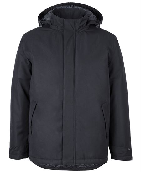 Urban fit , 100% Polyester shell fabric fully quilted with polyester padding , Detachable hood , Storm flap at centre front with chin guard , Two front lower patch pocket with soft and warm microfleece pocket bag , Adjustable sleeve opening , Embroidery zip at side seam , Waterproof rating to 2000mm.
