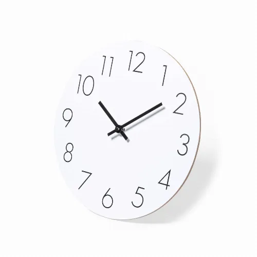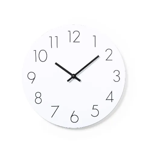 Wall clock made in MDF wood, with dial in white.