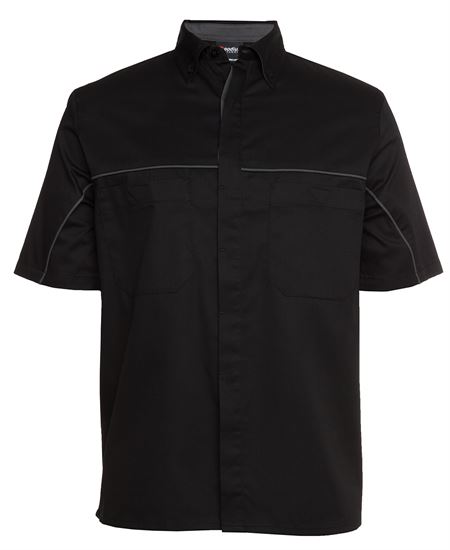 Classic fit , 65% polyester for durability, and 35% cotton for comfort , 145gsm easy care twill fabric , Two chest pockets with hook pile tape closure , Button down collar , Contrast piping along shoulder and sleeve , Concealed placket with bar tack , Straight hem with side split.