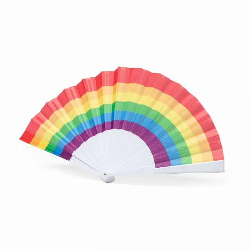 Rainbow fan with multicoloured fabric and white RPET ribs.