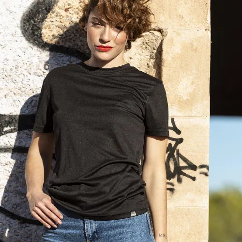 Technical t-shirt for adult in breathable RPET material 135g/m2, obtained from recycled plastic materials, to encourage the reusing of plastic residues and contribute to the Earthâ??s sustainability.