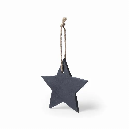 Christmas ornament in slate, with hanging ribbon and in elegant christmas tree and star designs.