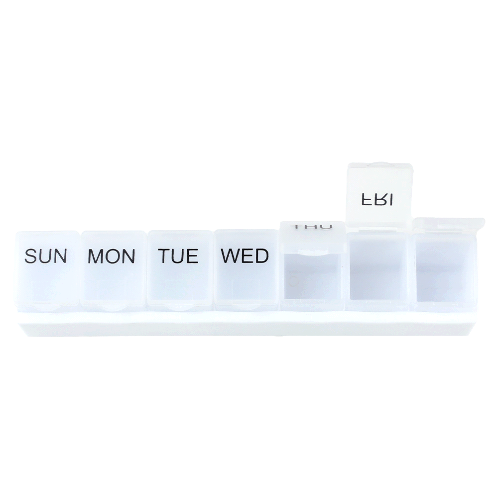 Keep your medication or supplements on track with this compact, travel-friendly weekly organiser. Easy-to-use pop out individual compartments for each day help you never miss a dose.