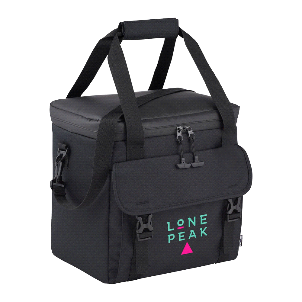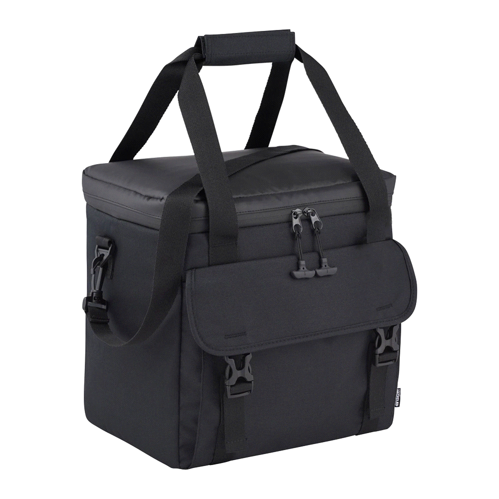 Eco Friendly Product. The eco-friendly Alfresco Recycled 24 Can Event Cooler is perfect for tailgates, golf outings, picnics or other events. Spacious enough for carrying all your food and drinks, it even has a stylish front pocket for easy storage. Best of all: It s made with recycled materials, so it s as sustainable as it is functional!.