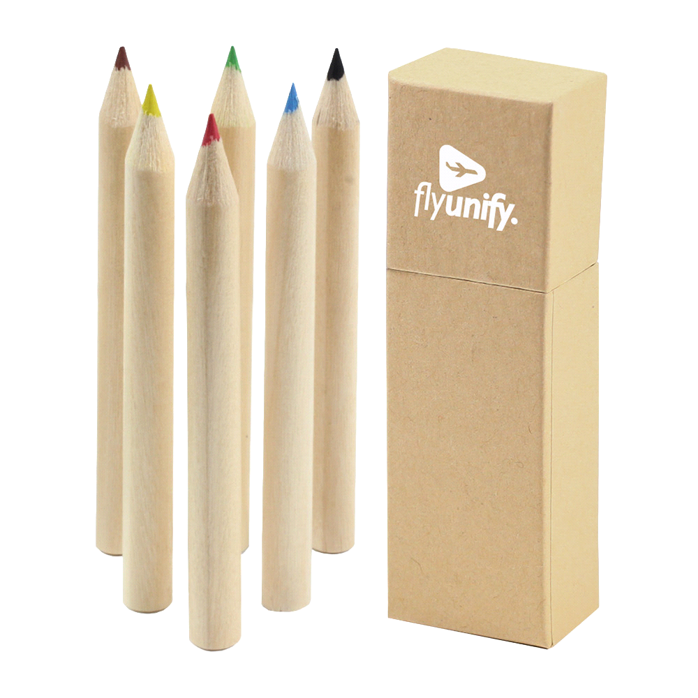 Six coloured pencils Presented in a customisable cardboard box. Packaging: Bulk. Materials: Box: Cardboard Pencils: Wood