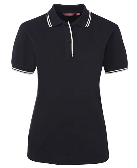 Classic fit , 65% Polyester for durability, and 35% Cotton for comfort , 210gsm pique knit fabric , Knitted collar with reinforced herringbone tape on inside neck seam , JBas 2-button placket , Straight hem with side splits , Easy care, reduced pilling fabric , Complies with Standard AS 4399:2020 for UPF Protection , Size 06 only in Navy/White.