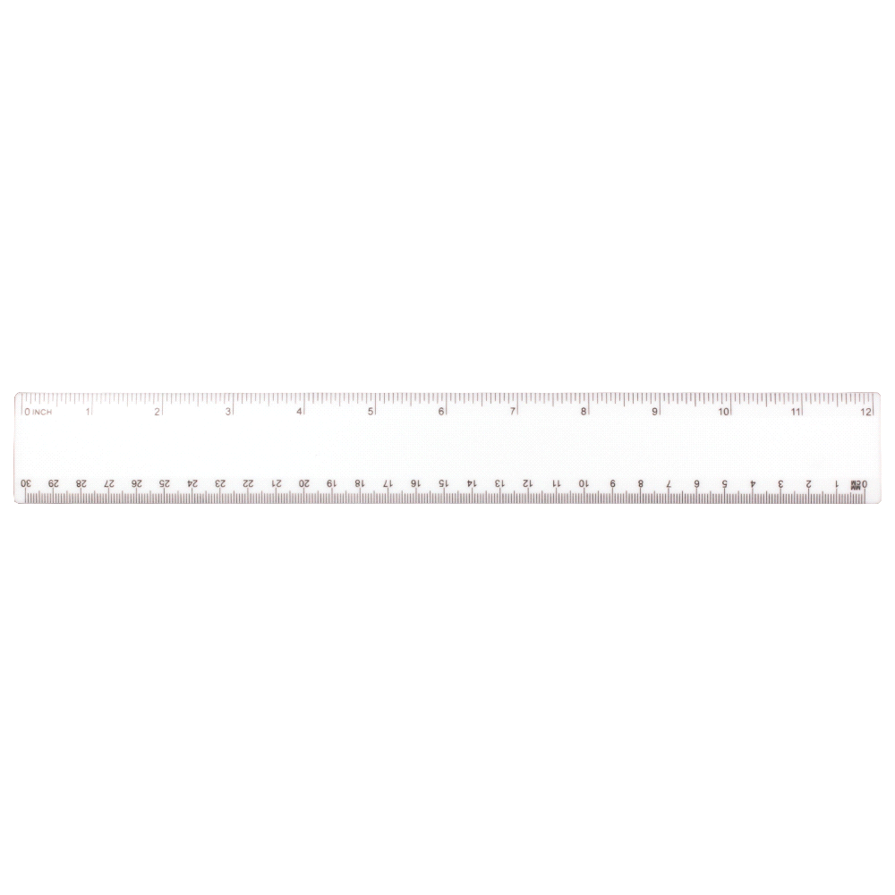 30cm ruler Measurements: Inches and centimetres Recessed edge design. Packaging: Bulk. Materials: Polystyrene plastic